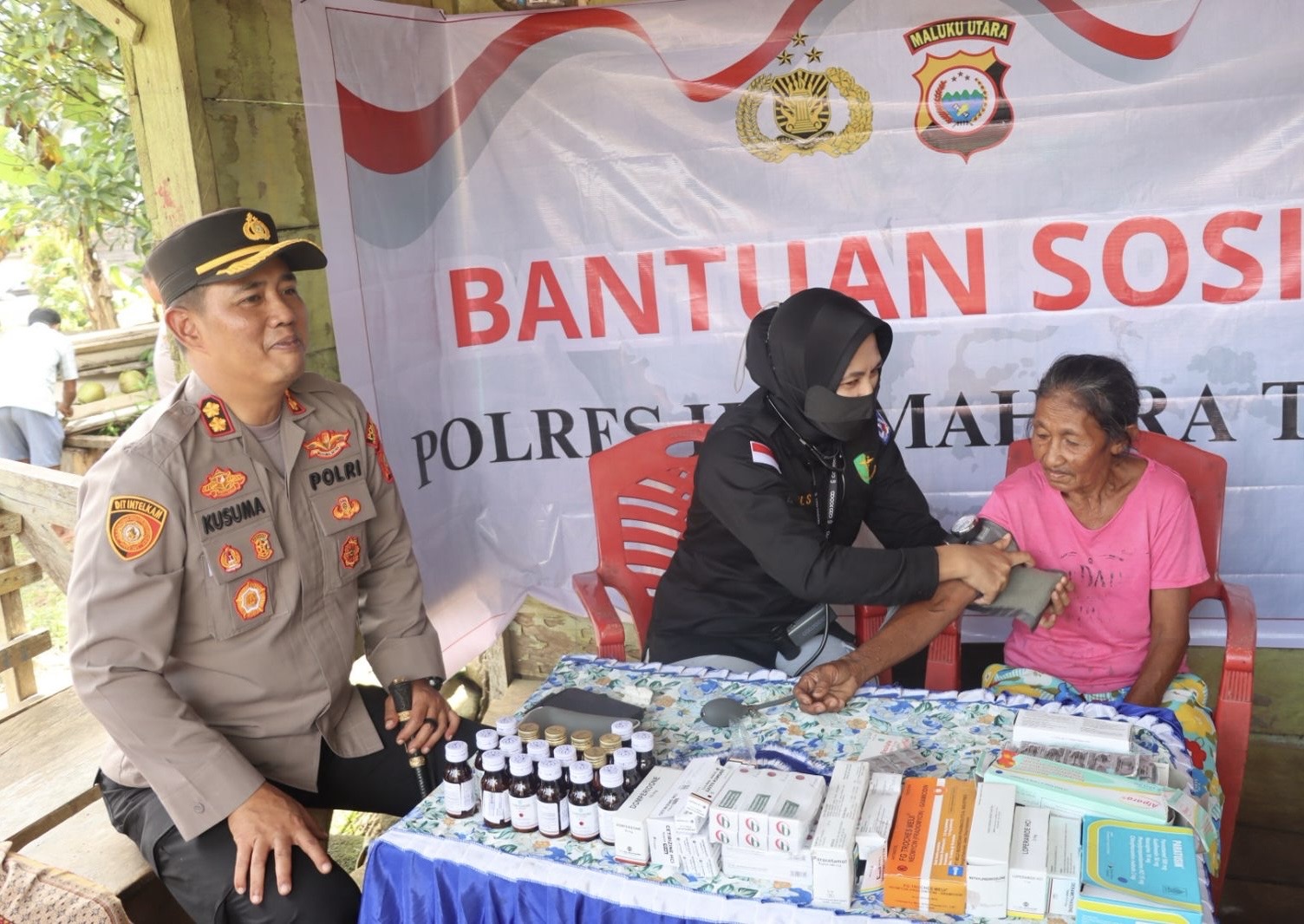 Kapolres Halmahera Timur AKBP Bobby Kusuma Ardiansyah, saat pantau pemeriksaan kesehatan gratis di salah satu masyarakat.