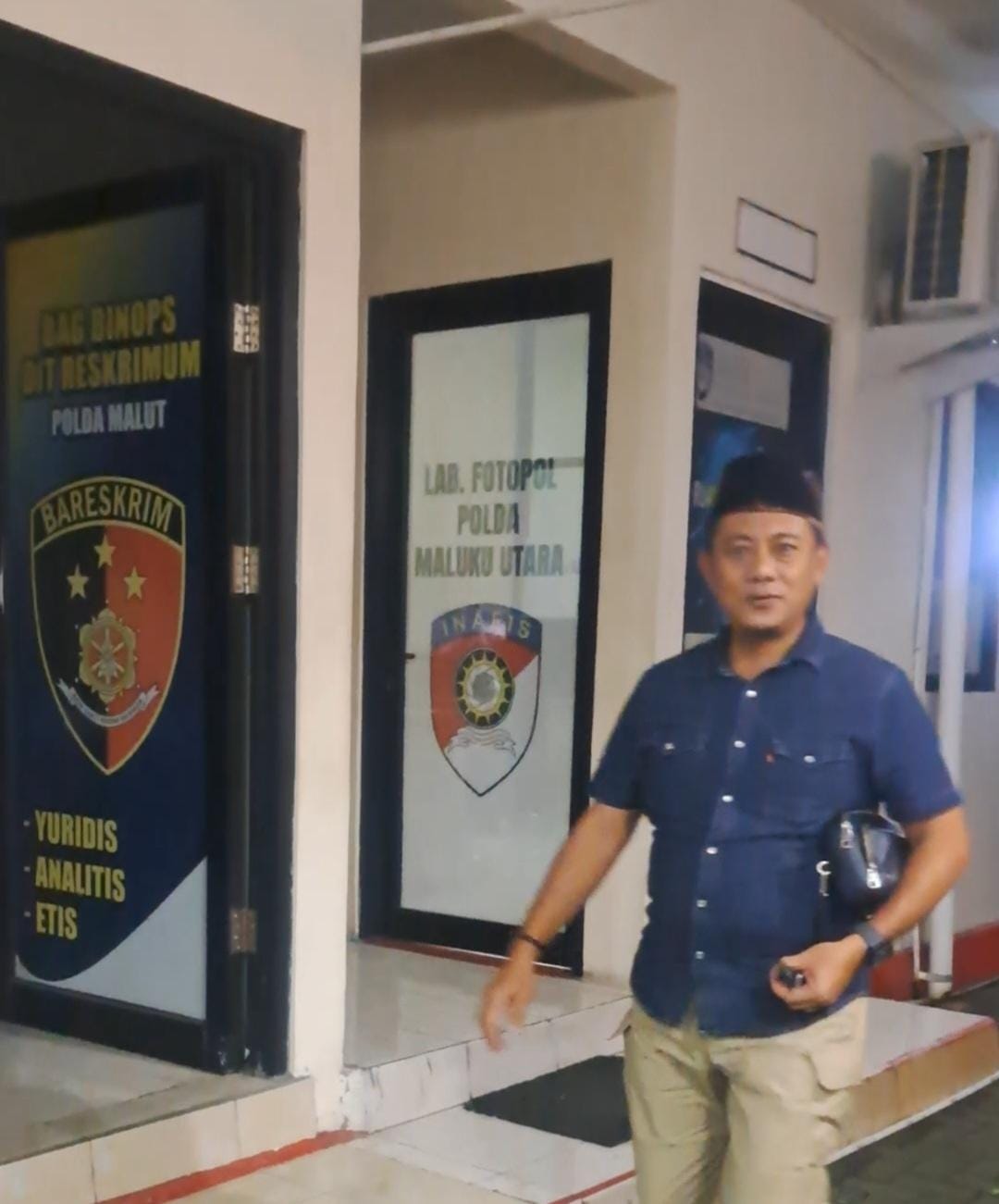 Saat tiba di Kantor Direktorat Reserse Kriminal Umum (Dirreskrimum) Polda Maluku Utara, Kelurahan Gamalama, Kecamatan Kota Ternate Tengah sekira Pukul 07.30 WIT, Jumat 23 Januari 2026.