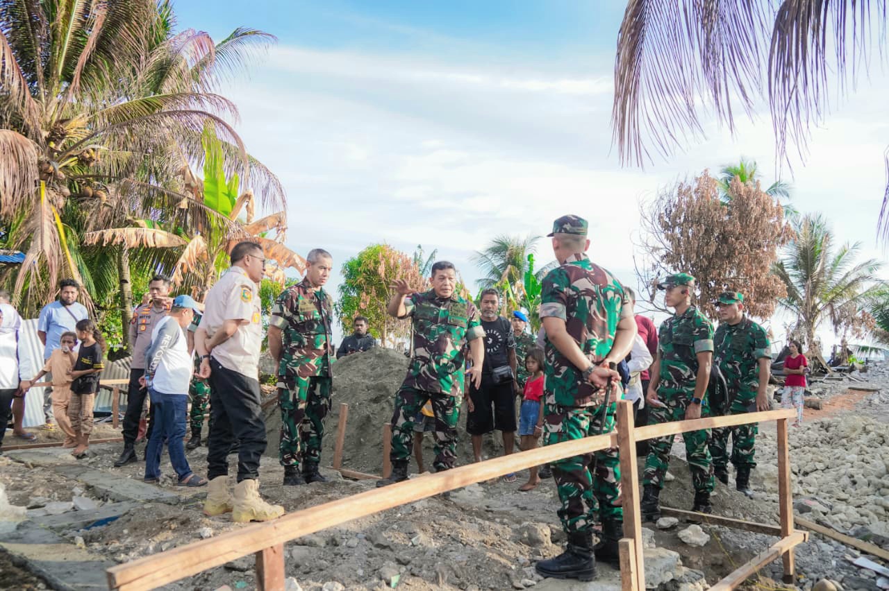 Peninjauan ini dilakukan Pangdam dan rombongan sebagai bentuk perhatian dan kepedulian TNI terhadap masyarakat, Rabu (15/4). Dalam kunjungan tersebut, Pangdam meninjau progres pembangunan rumah warga yang saat ini sedang dikerjakan secara gotong royong dengan melibatkan unsur TNI, Pemerintah Daerah (Pemda) serta masyarakat setempat. Kehadiran Pangdam menjadi motivasi bagi seluruh pihak agar proses pembangunan dapat berjalan lancar dan selesai tepat waktu.