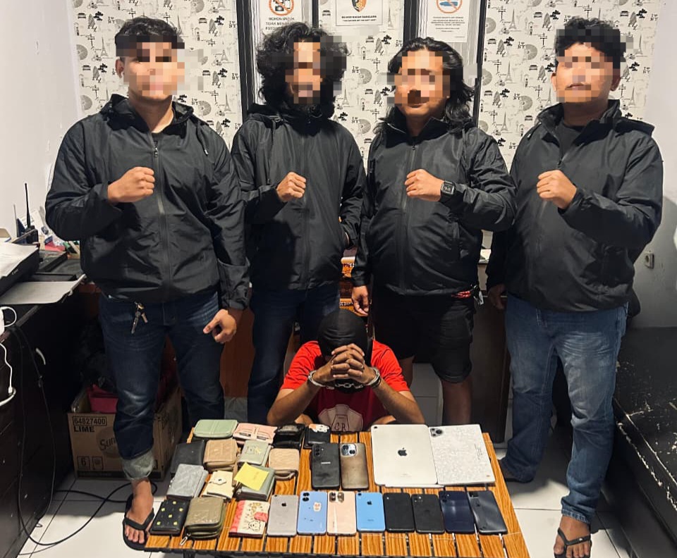 “Sejumlah barang bukti yang berhasil diamankan dari tangan terduga pelaku diantaranya adalah, 2 unit IPAD dengan merek Apple dan Ipad M66 PROMAX Cristral serta sembilan unit handphone berbagai jenis,” katanya.