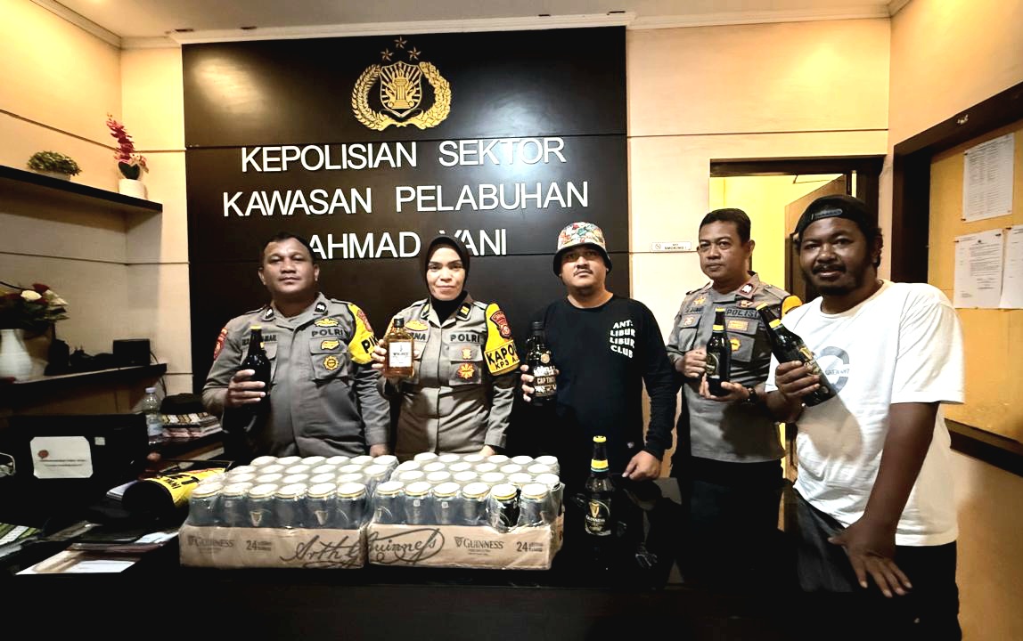 Kapolsek Kawasan Pelabuhan Ahmad Yani, Iptu Mirna Oramali, melalui Kasi Humas, Ipda Sudirjo menyatakan, petugas menemukan sejumlah minuman beralkohol ilegal yang disembunyikan di deck 3 kapal Uky Raya dan tempat penitipan barang, bercampur dengan tumpukan dos air mineral tanpa ada pemilik yang mengaku.