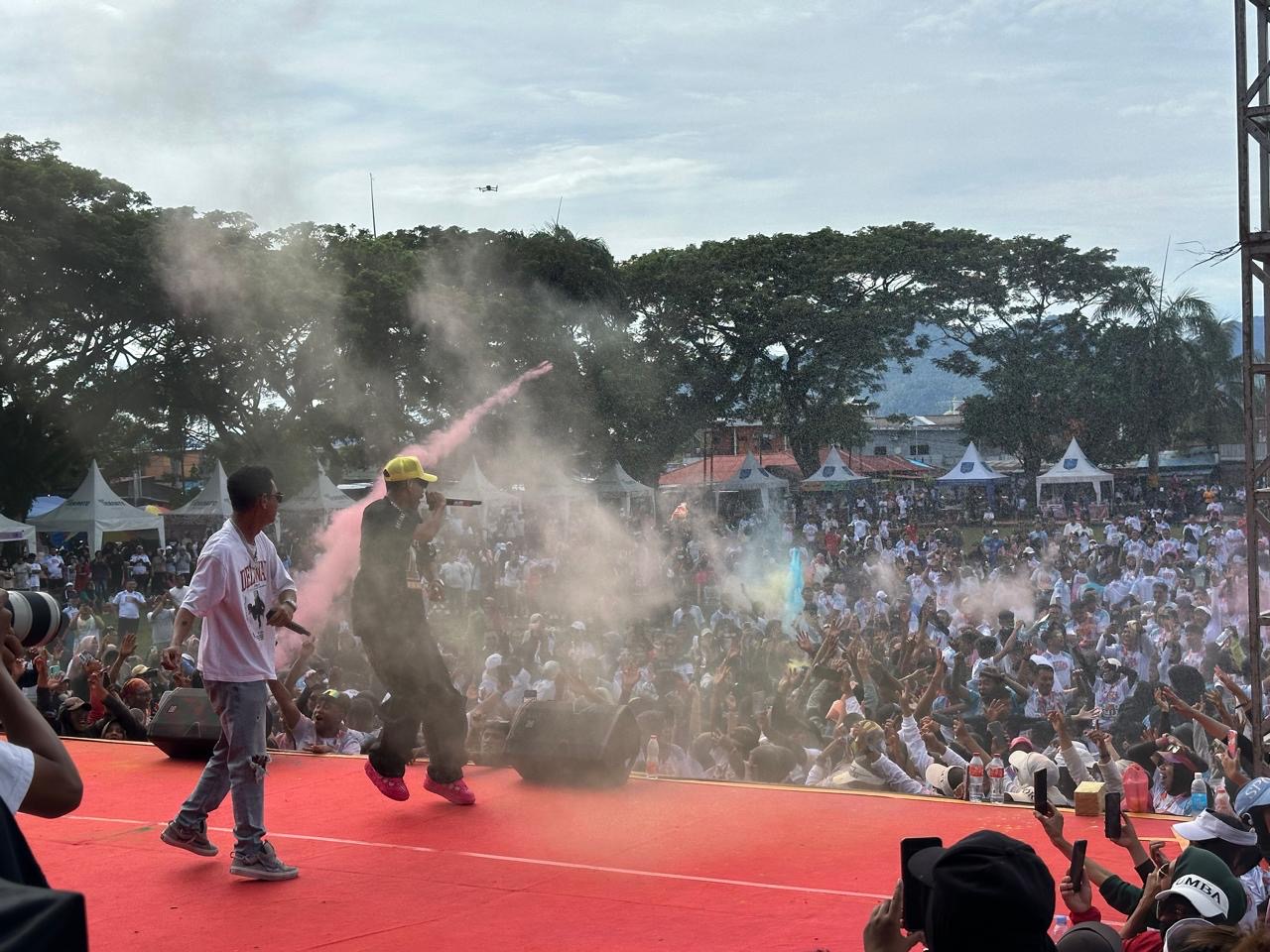 Peserta Gama Color Fun Run Polres Ternate selain mendapat doorprize, masyarakat Kota Ternate juga dihibur dengan penampilan penyanyi rapper Jacson Zeran. (red)